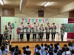 先生たちからのおたのしみ、ハンドベルの演奏を聴いたりしました。