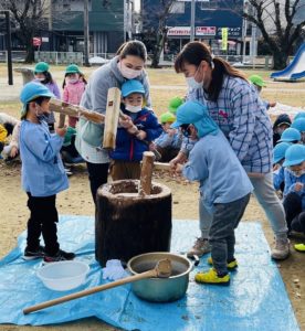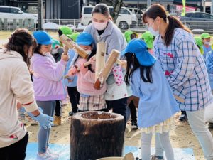 「ペったん!ぺったん!」と声を掛け合いながらやることで、