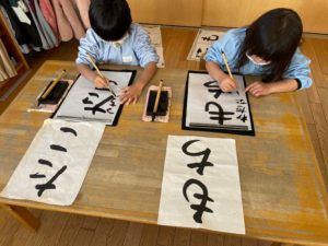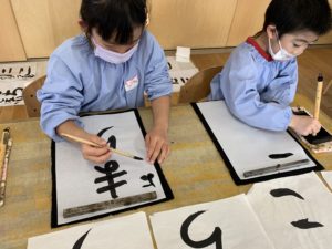 初めて習字をする子がほとんどで、筆の使い方に苦戦する子もいましたが、