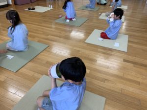 すみれぐみになって初めてのお茶会、十分な感染対策のもとおこないました🍵