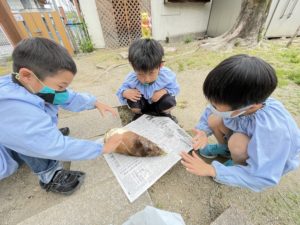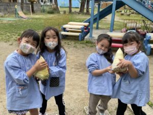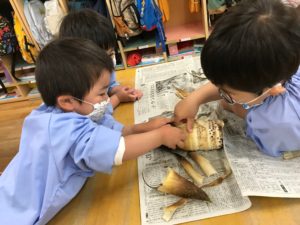 「かたいよ~!」「変なにおいする!」「いい匂い~!!」と、子どもたちから沢山の声が上がりました🎵