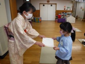 最後に先生から修了証(おしるし)を頂きました。