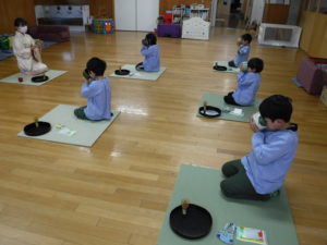 「いただきます」感謝の気持ちを込めてお菓子を味わいました。