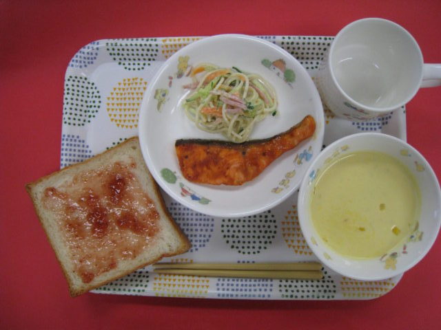 いちごジャムが大人気だったようです(*^^*)タンドリーサーモンは魚が苦手な子も食べやすいようで、残す子はほとんどいませんでした(^^)/