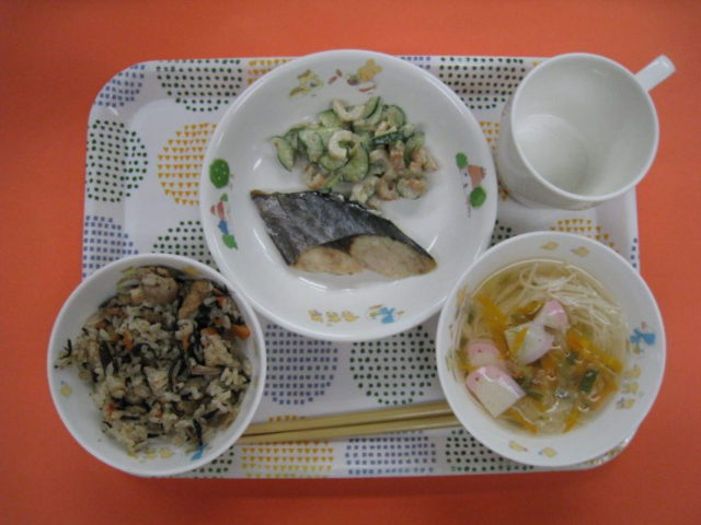 子どもたち大人気のヘルシー丼にカレー味のちくわと、どのメニューも好き嫌いなく食べてくれるそうです。