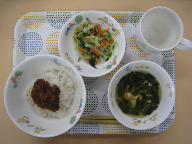 彩りのキレイなお給食になりました。久しぶりのゆかりご飯に、どのクラスもおかわりの声がいっぱいでした。