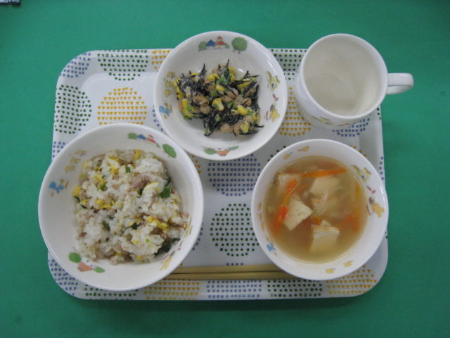 久しぶりの五目御飯です。子どもたちはシンプルな和食が大好きです😊どのクラスも完食でしたよ🎵