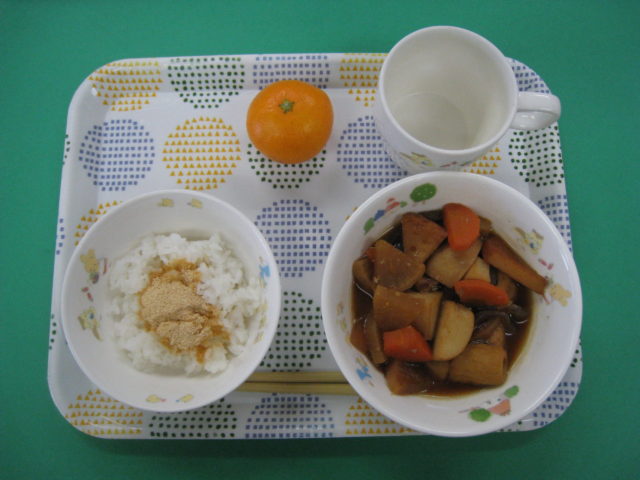 今日は、お餅つき。給食ではご飯に🍚きな粉をふりかけました。いつもは少ししか食べられない子も、きな粉のチカラでたくさん食べられましたよ。