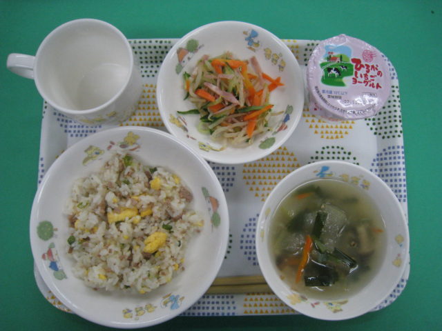 チャーハンは、いつも大人気です💛ご飯も増量して炊きました。期待通り、どのクラスも完食😋