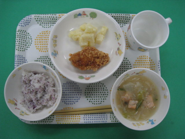 北海道産のじゃがいもを蒸して塩を振り、仕上げにバターをかけました。大好評で「もっと食べたかったー💛」と、子どもたちからの嬉しい声がありました。