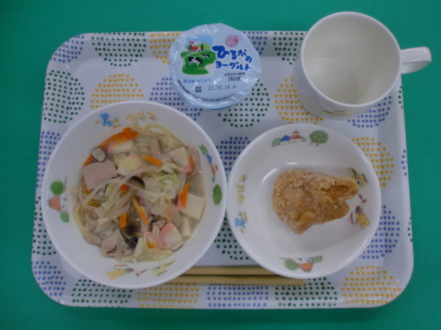 大人気の甘辛揚げです。秋野菜をたくさん使い、食感を楽しんでもらえるようにしました。たくさん噛み噛みできたかな❔