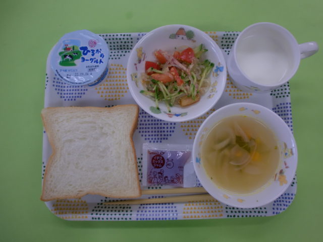 カレー味のスープには、おくらが入っています。「お星さまがいたね❤」「少しネバネバしとったよ」など、子どもたちはお口の中で、いろいろ感じてくれているようです😊