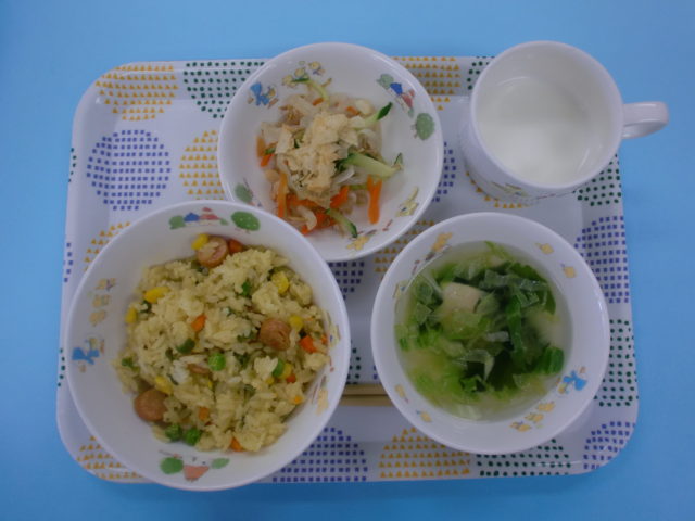 みんなが大好きなチャーハン☺そして、バンサンスーという組み合わせに、朝からたくさんの子が大喜び!!