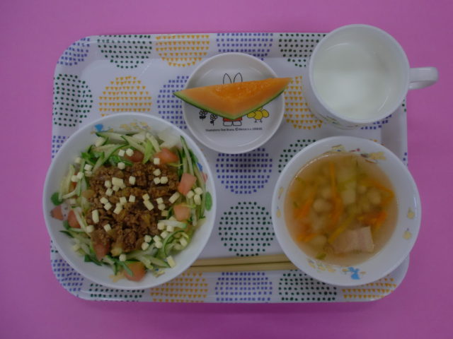 朝、献立を見て、『やったー❣❣タコライスやぁー❣❣』と言っている子もたくさんいました(^^)/