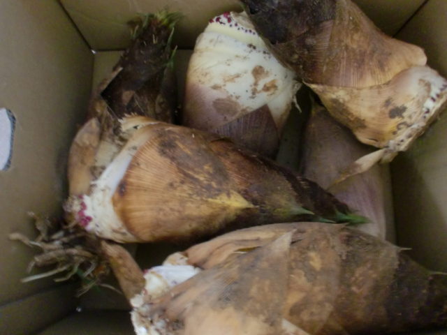 たけのこは、1日で30センチも大きくなるので、もうこれは、土から出て4日くらい経っているもの。