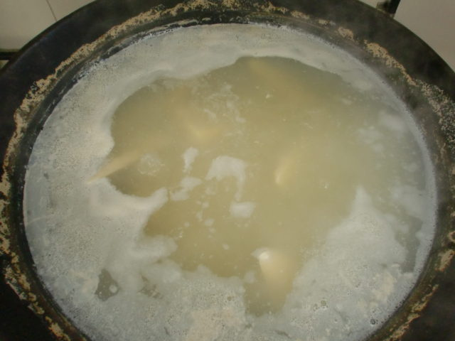 みんなが頑張ってむいてくれた筍は、いま給食室であく抜き真っ最中です(^_-)-☆