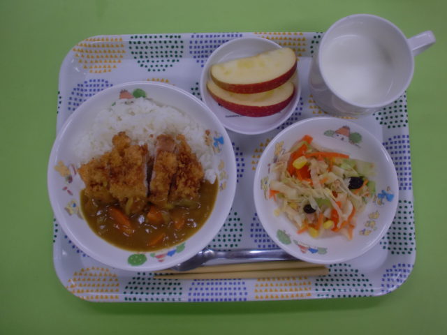 今日は延期になっていた、お誕生日会でした🎵いつも大人気のカレーをアレンジして、豪華カツカレー🍛にしました。