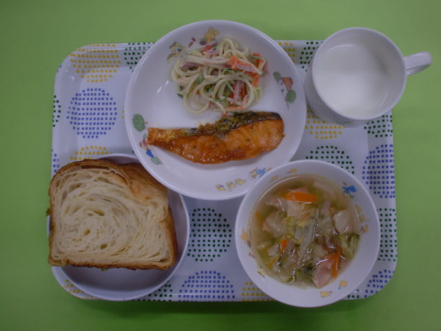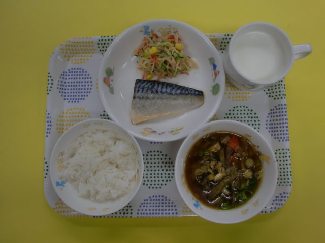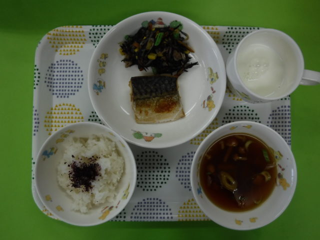 脂がのった鯖を塩焼きにしました。シンプルな味付けですが子どもたちは美味しいねー😊とニコニコ顔でした。