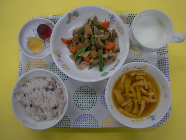 雨☔が降っていてお外には遊びに行けなかった一日になりました。お天気が悪くてもみんなの元気な声が給食室まで届きましたよ😊