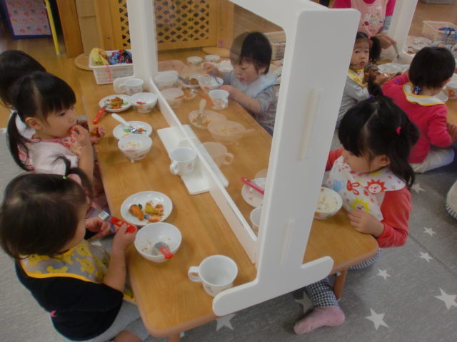 みんなお外でたくさん遊んでいたのでお腹が空いていたようです(^_-)-☆