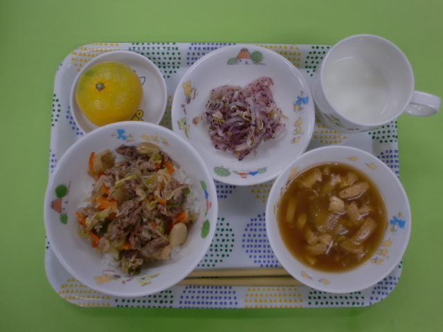 『いただきまーす』の後は、もやしのゆかり和えを最初に食べる子が多かったです(^^)/