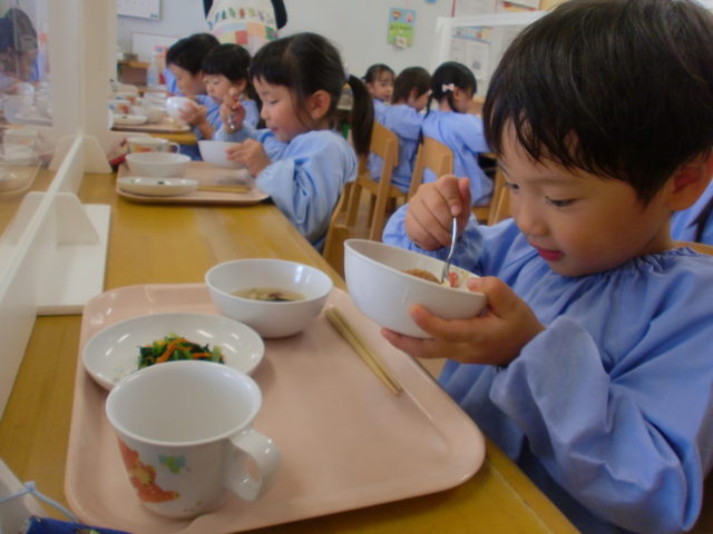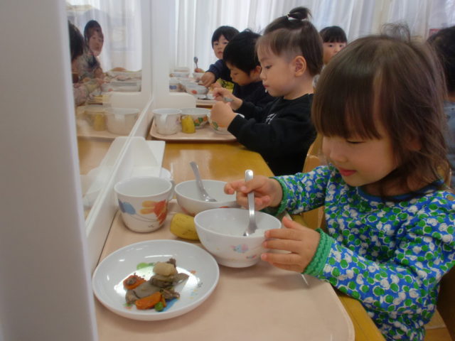 2歳児クラスはすまし汁が人気で、見に行くとすまし汁飲んだよー!という子がたくさんいました🌟