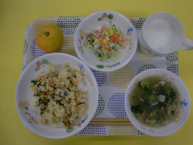 小松菜はとっても栄養価の高い野菜のひとつ!!苦手な子も多いですが、このこまツナピラフはとっても人気で毎回よく食べてくれます🎶