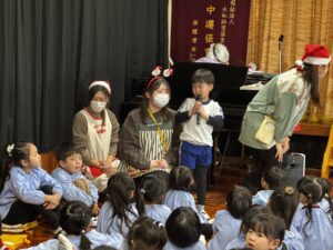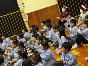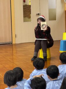 園長先生のお話はクリスマスのお話で、心がほっこりするひととき、クリスマスの雰囲気を感じました♪
