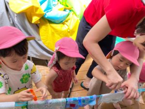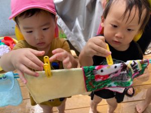 洗濯ばさみできれいに干すよ!おうちでもお手伝いできるかな?