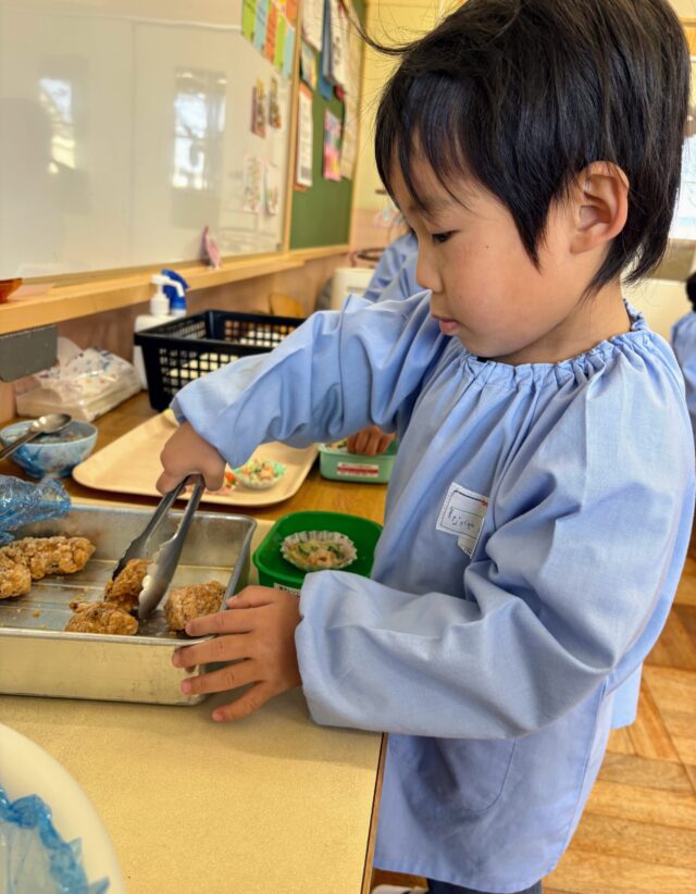 各クラスごとにバットに盛り付けました!