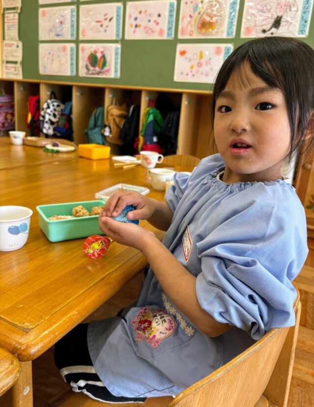 さくら組さんは慣れた様子でおにぎりをにぎにぎ!