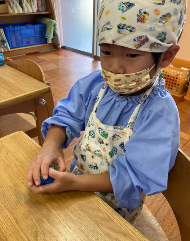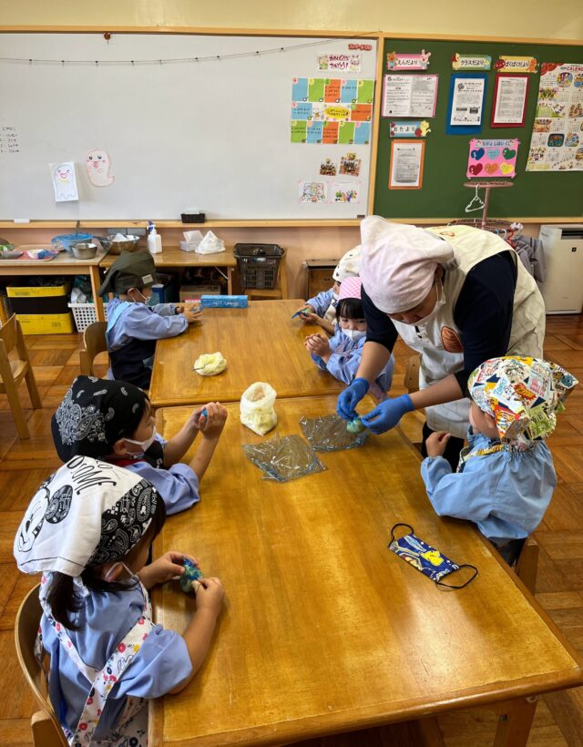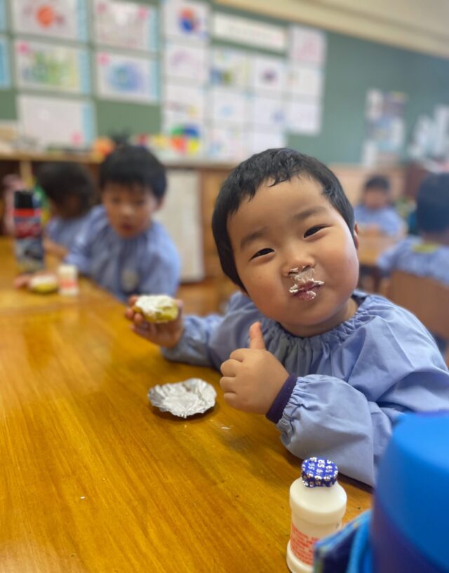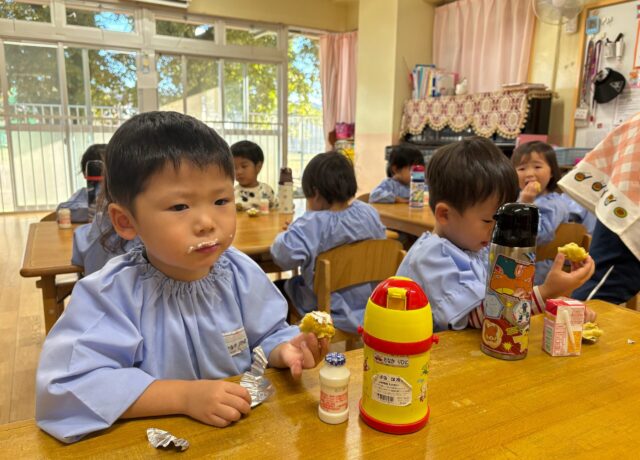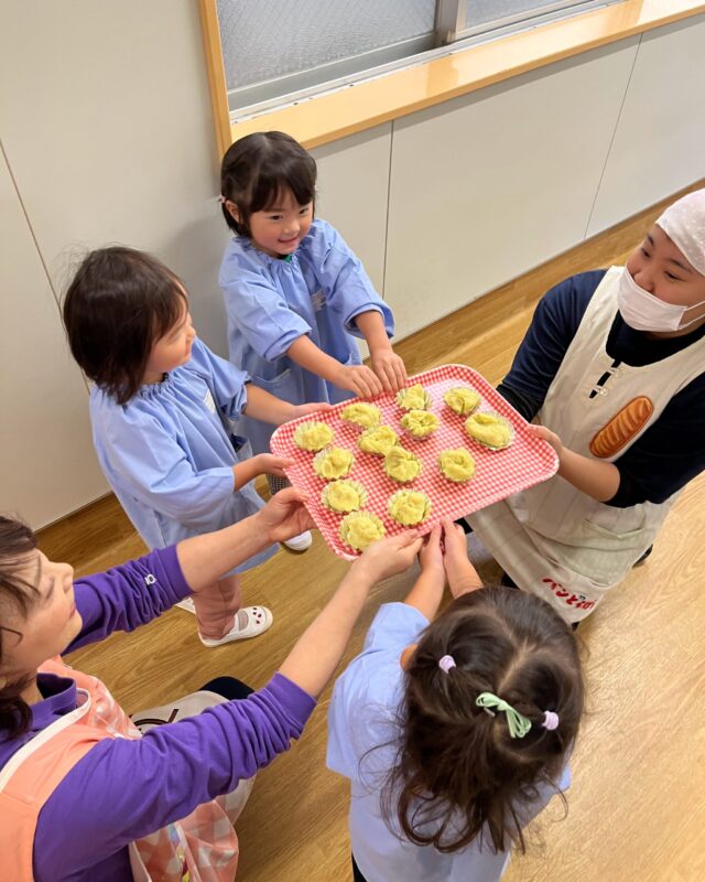 さくら組では先週の芋ほりでとれたさつまいもを使用して、おやつの『スイートポテト』をクッキングしました🍠