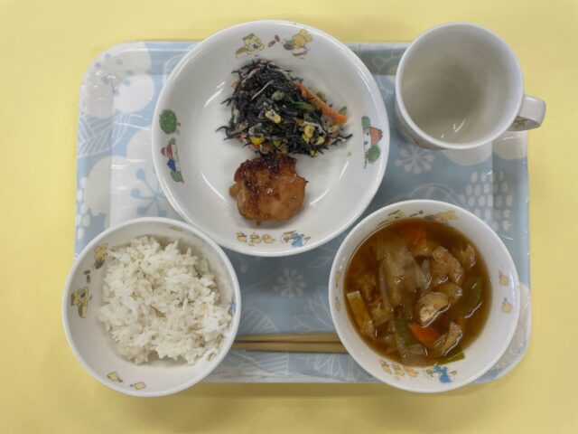 ひじきの和風サラダもマヨドレとごまの風味でたくさん食べてくれました🎵