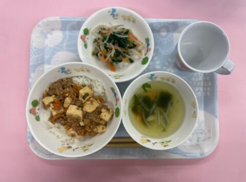 今日のマーボー丼はカレー粉を入れて、カレー風味にしました。