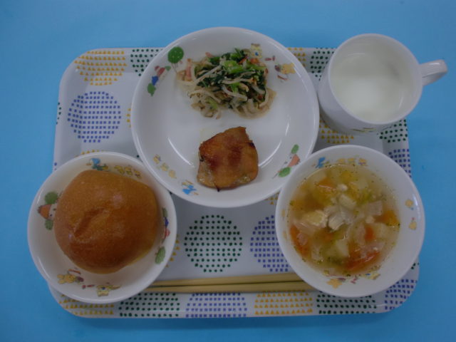 可愛いまん丸のパンです。お肉やサラダをはさんだり、スープにつけたりと、子どもたちはいろいろな食べ方をして楽しんでくれます🎵