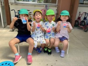 今日のおやつは夏祭りらしくかき氷🍧でした!